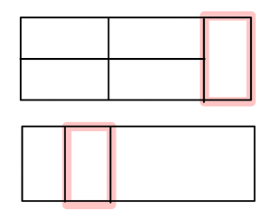 가령 아래의 그림처럼 2x1 타일을 배치하면, 1x2 타일 2개를 배치할 수 없다.