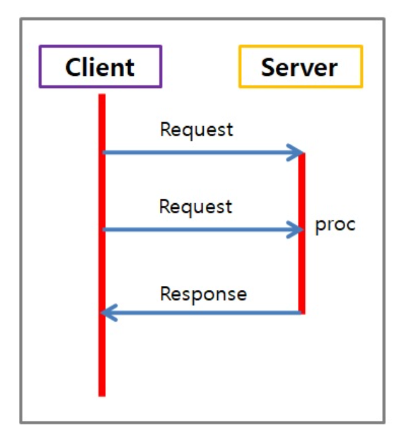►Synchronous : 요청이 들어온 순서에 맞게 하나씩 처리하는 방식으로, 요청 후 결과가 와야만 다음 작업이 이루어짐.