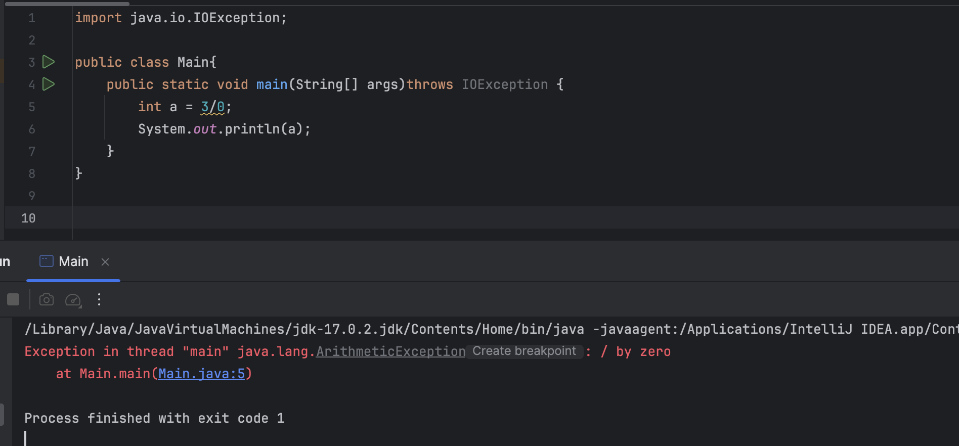 ex) 0 으로 값을 나누는 경우 런타임 에러를 발생시킨다.