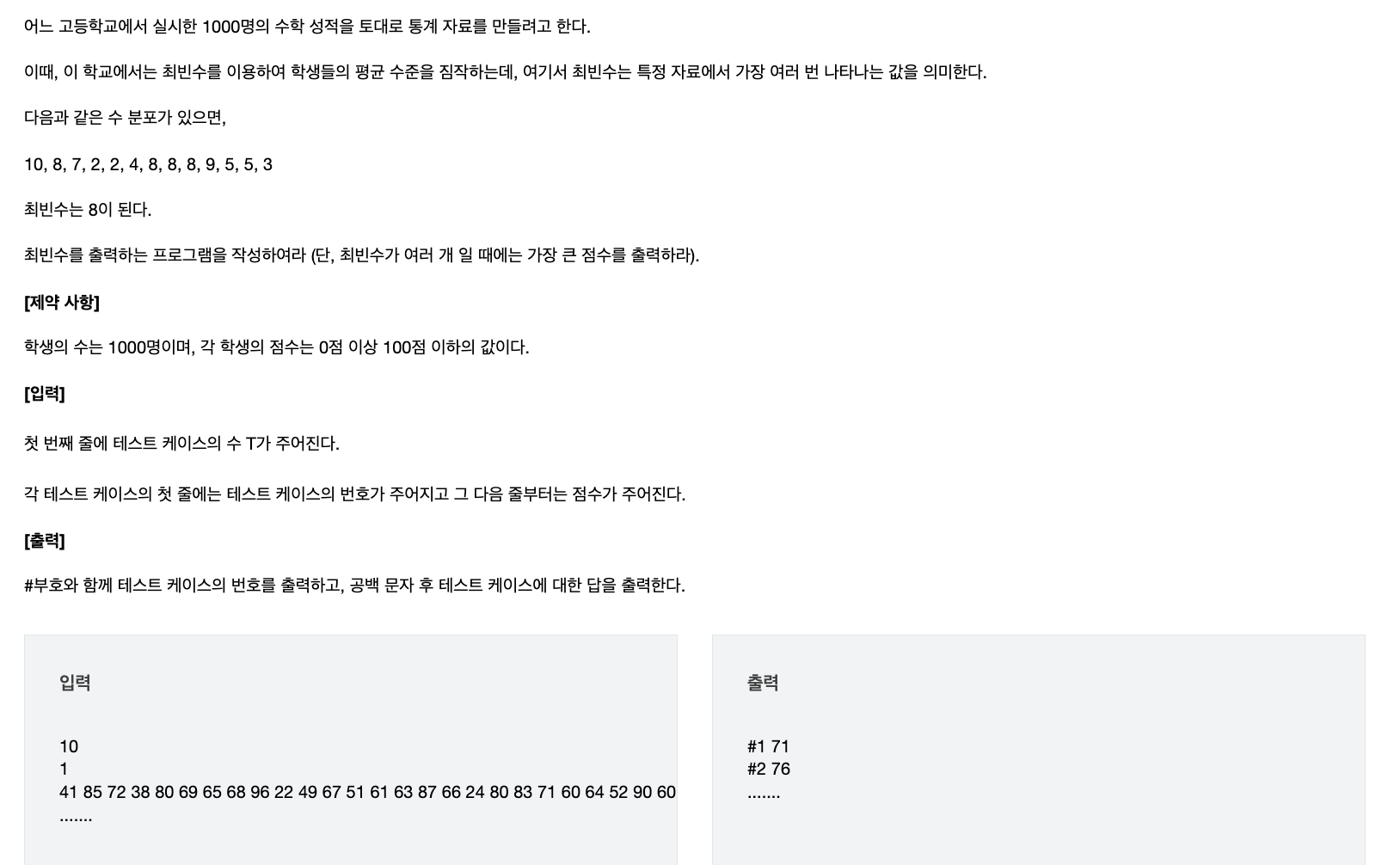 : 최빈수를 저장할 변수