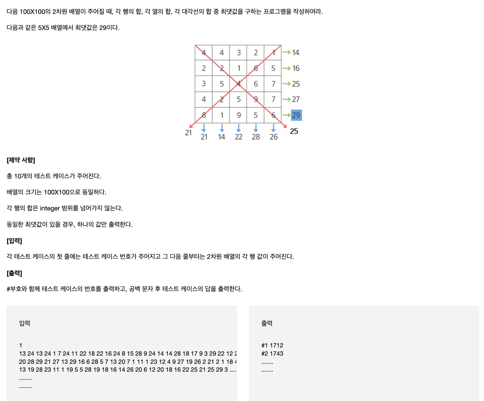 그리고 각 대각선의 합도 저장해야되니, 총 행과 열의 합인 200 + 대각선 두 개 = 총 202개의 합을 저장해야된다.