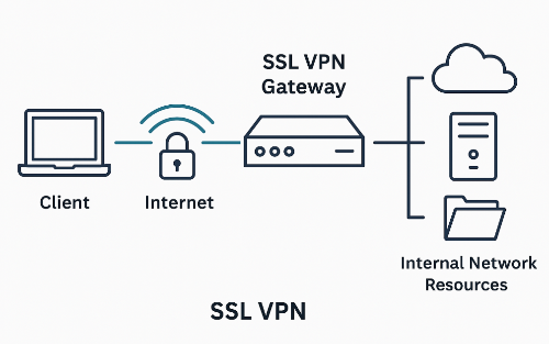 SSL VPN(Secure Sockets Layer Virtual Private Network)은 Client to Site 방식의 VPN으로 사용자가 네트워크에 접근하기 위해 사용된다.