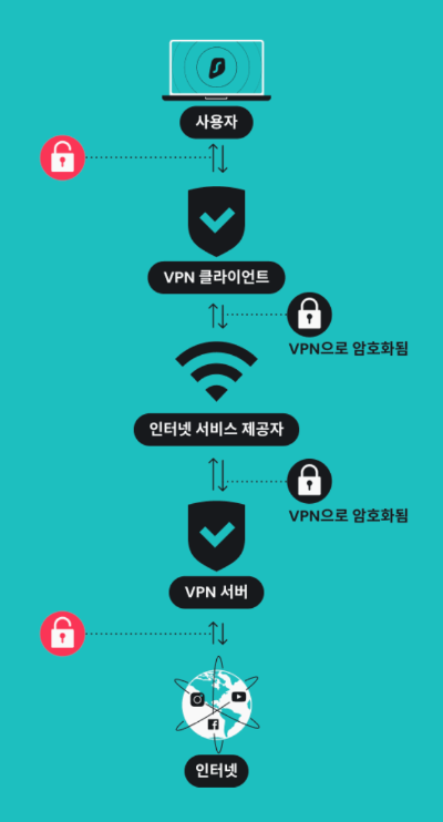 - 웹사이트나 서비스는 VPN 서버의 위치를 사용자의 실제 위치로 인식하게 된다.