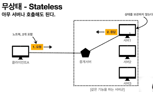 즉, 무상태는 응답 서버를 쉽게 바꿀 수 있다. -> 무한한 서버 증설 가능