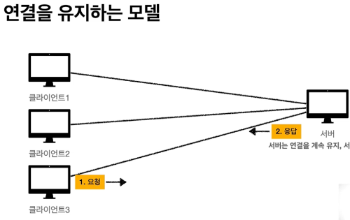 - HTTP는 기본이 연결을 유지하지 않는 모델