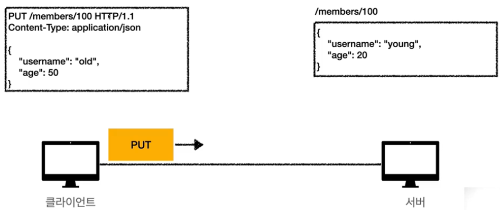 - 클라이언트가 리소스 위치를 알고 URI 지정 (POST와 차이점)