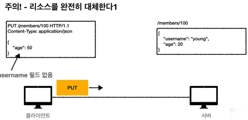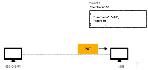 - PUT : 리소스를 대체, 해당 리소스가 없으면 생성