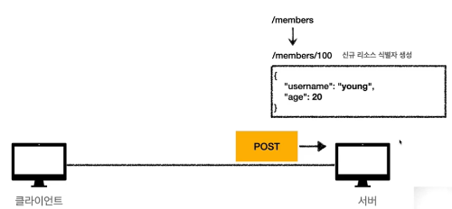 정리 : 이 리소스 URI 에 POST 요청이 오면 요청 데이터를 어떻게 처리할지 리소스마다 따로 정해야함.