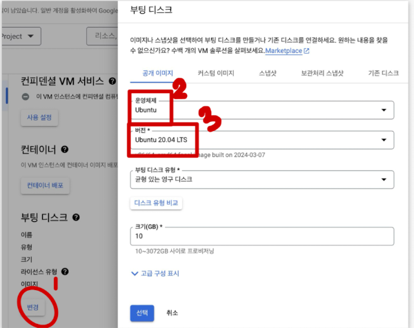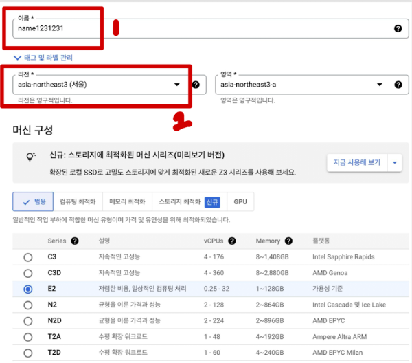e2-micro 선택 (본인이 원하는 사양으로 설정)