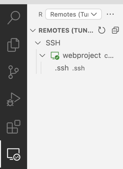 이후 좌측 사이드바에 새로운 아이콘이 생기게 되고 연결된 ssh 가 뜬다.