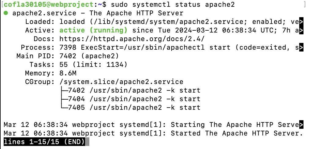 Apache가 성공적으로 설치되면 운영체제가 자동으로 Apache 서버를 시작합니다.
