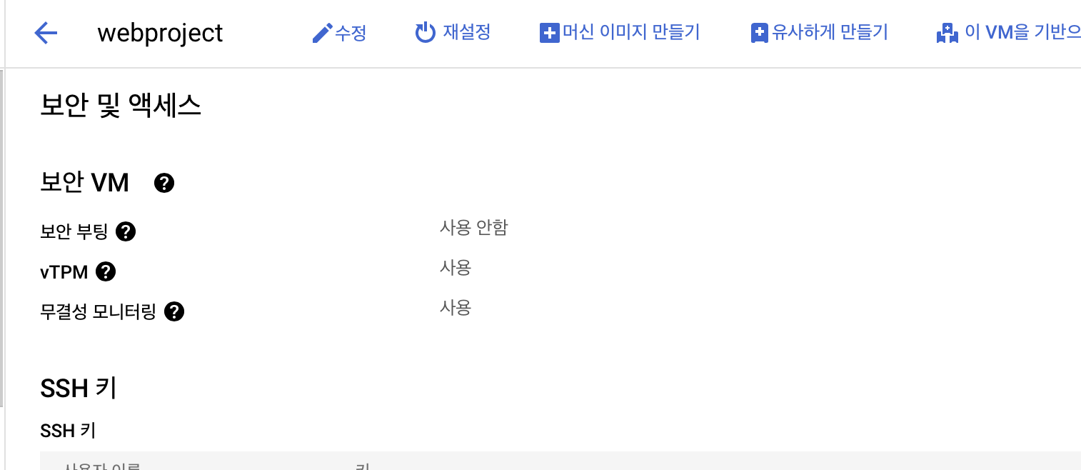 Google Cloud Platform에서 가상 머신을 생성을 하는 과정이다.