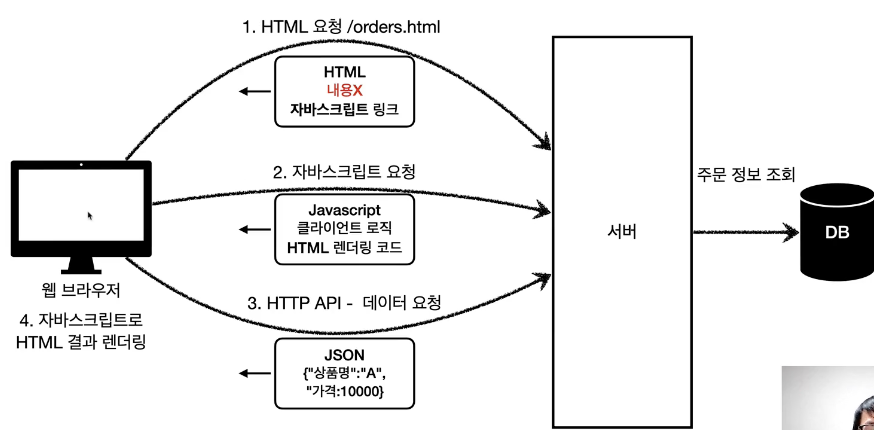 - HTML 최종 결과를 서버에서 만들어서 웹 브라우저에 전달