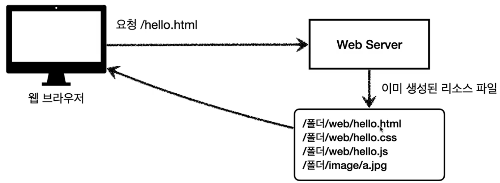 : 고정된 HTML 파일, CSS, JS, 이미지, 영상 등을 제공