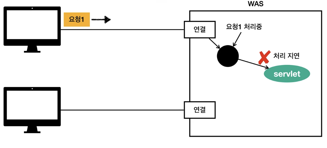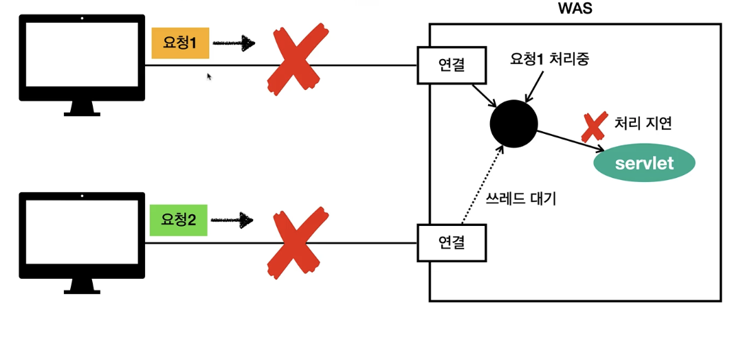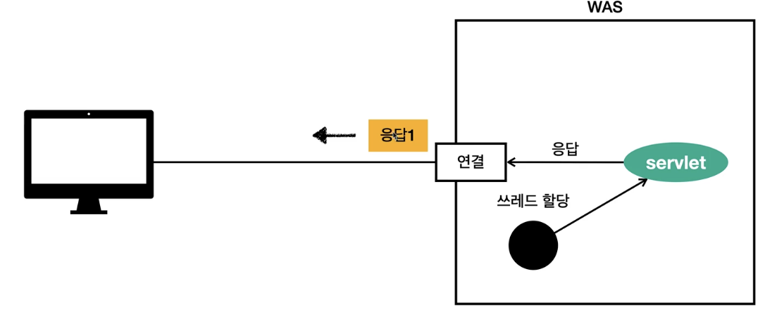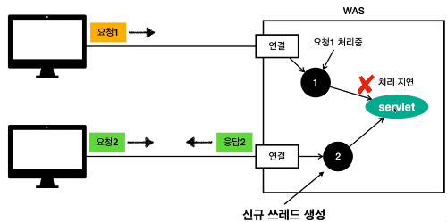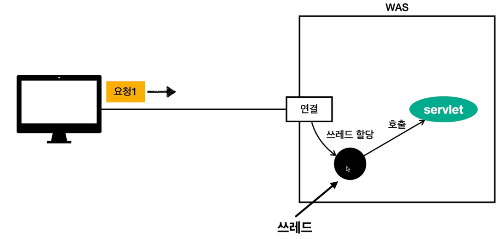 - 멀티 쓰레드에 대한 부분은 WAS 가 처리