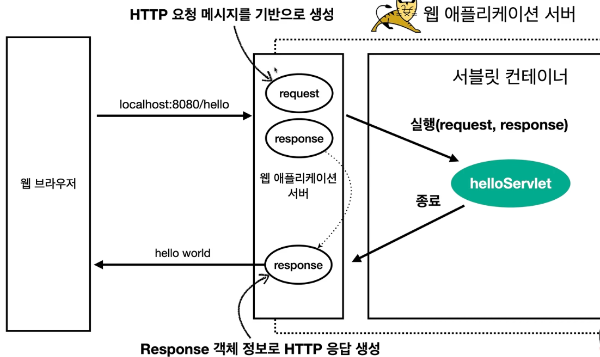 - 서블릿 컨테이너는 서블릭 객체를 생성, 초기화, 호출, 종료하는 생명주기를 관리한다.