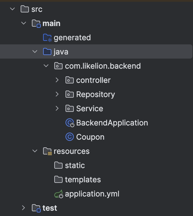 main이 담긴 패키지는 com.likelion.backend 인데,