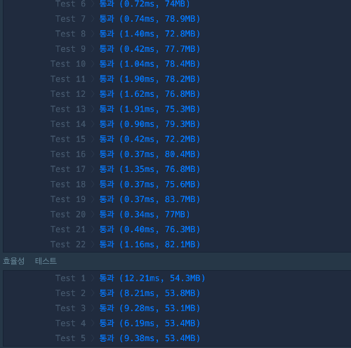 일단 일반 테스트 효율성도 너무 떨어지고, 효율성 테스트도 떨어졌다..