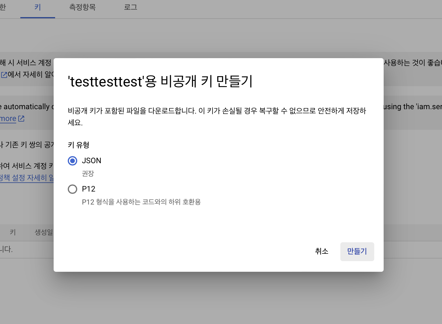 이때 생성된 JSON key 파일은 노트북 폴더에 저장해둡니다!! 사용시 resource에 key 파일을 넣어야하니 꼭 위치를 기억해주세요 !