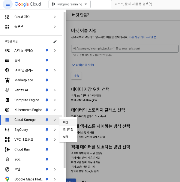 1. menu 에서 Cloud Storage 에서 버킷 선택