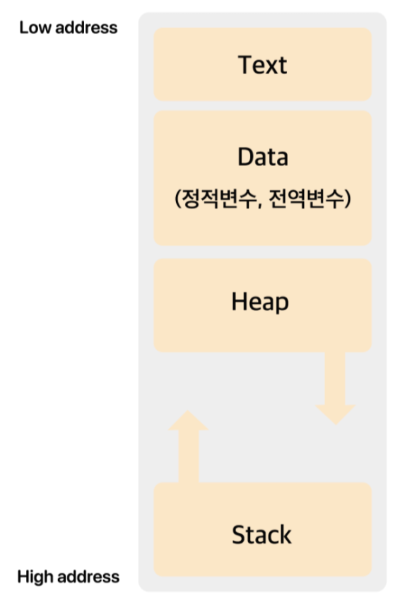 프로그램이 실행되어 프로세스가 만들어지면, 다음 4가지의 메모리 영역으로 구성되어 할당 받게 된다.